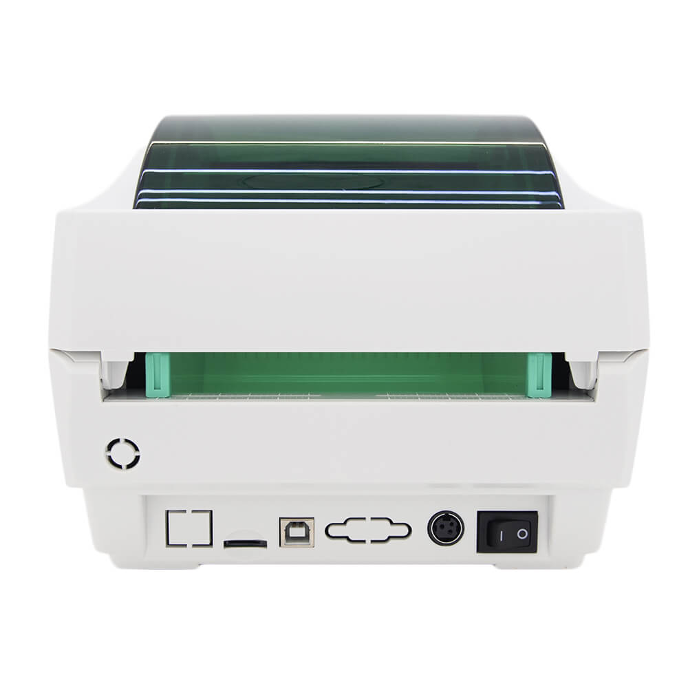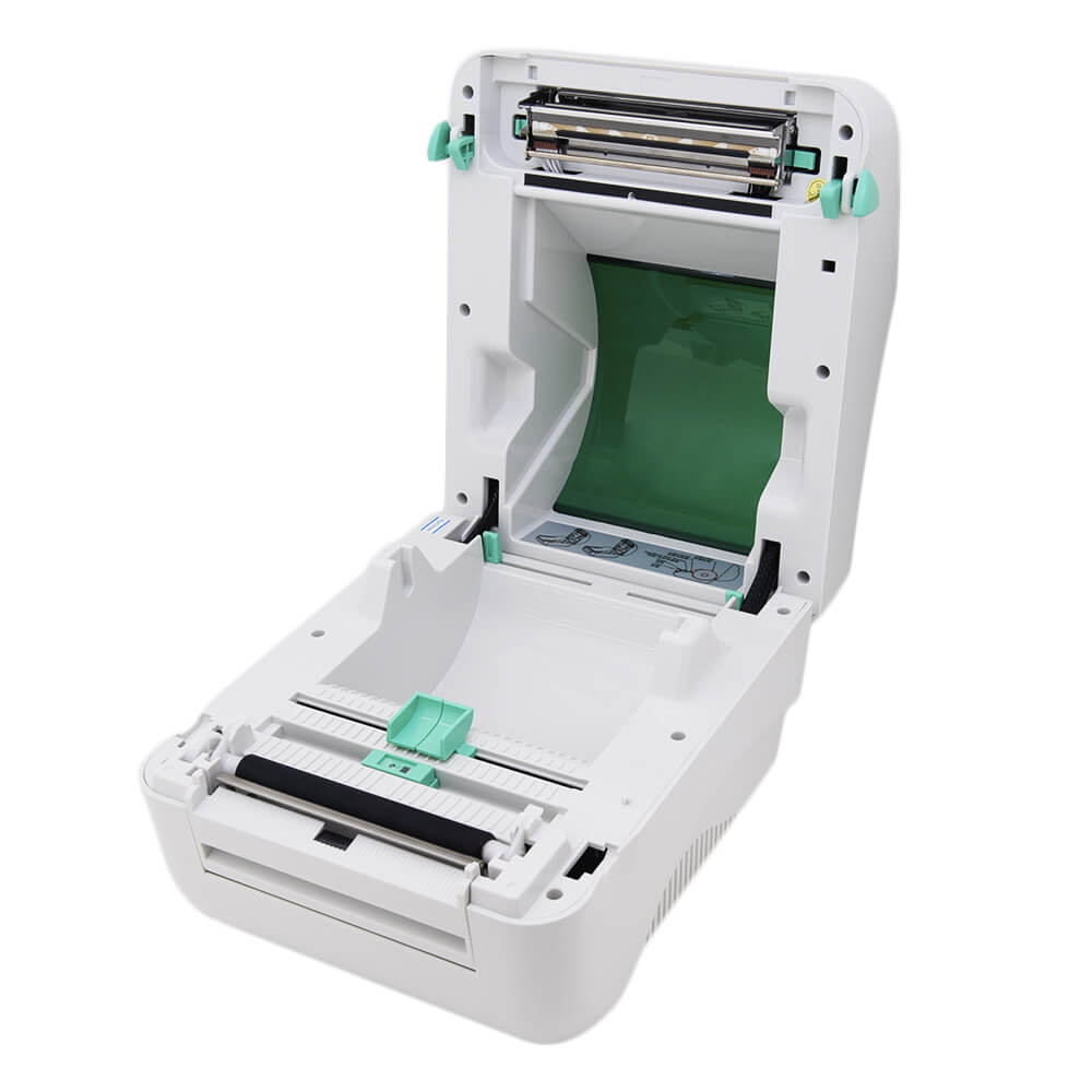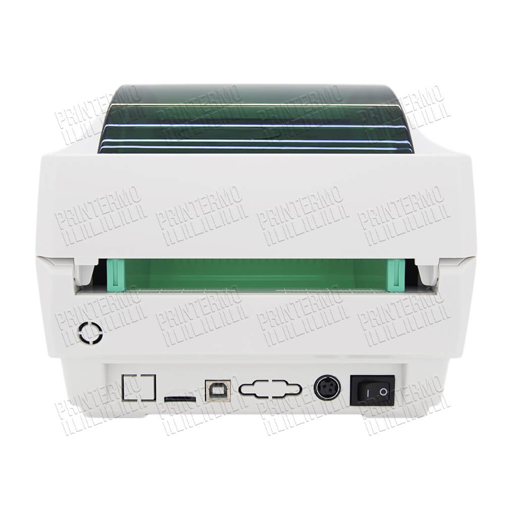 Термопринтер для печати на бумаге шириной 20-108 мм (нет в комплекте). Отличается высокой производительностью: за 60 секунд создает 50-70 стандартных этикеток. Прибор печатает линейные коды EAN-13, EAN-128. MSI, Codabar, EAN-8 и двухмерные PDF417, Data Matrix, QR-коды. Опция «Черной метки» препятствует нанесению изображения за пределы наклейки. Принтер оснащен датчиком определения размера, что позволяет распечатывать данные на фигурной основе. Автоматическое выравнивание носителя после закрытия отсека исключает перекос информации на бумаге. Замена нового рулона занимает 1-2 минуты, не требует специальных навыков.